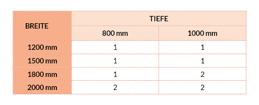 Die Anzahl der Traversen je Boden entsprechend der Abmessungen