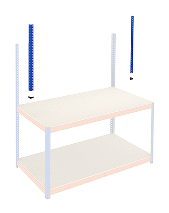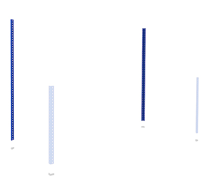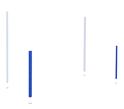 Zwei Lochwinkelprofile in blauer Farbe mit einer Höhe von 1524 mm.