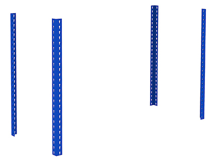 - Vier Lochwinkelprofile in der Farbe Blau mit 800 mm Höhe.