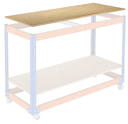 - Eine zentrale Verstärkungstraverse für die oberen Böden. Der Arbeitstisch mit Rollen in der Größe 1800 x 1000 mm hat zwei Verstärkungstraversen.