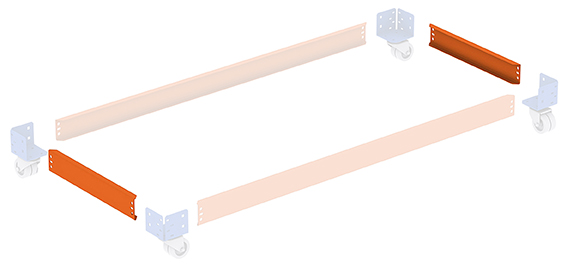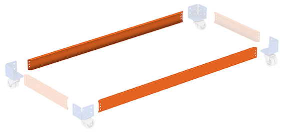 - Jeweils zwei 600, 800 oder 1000 mm lange Längsträger für die Tiefe.